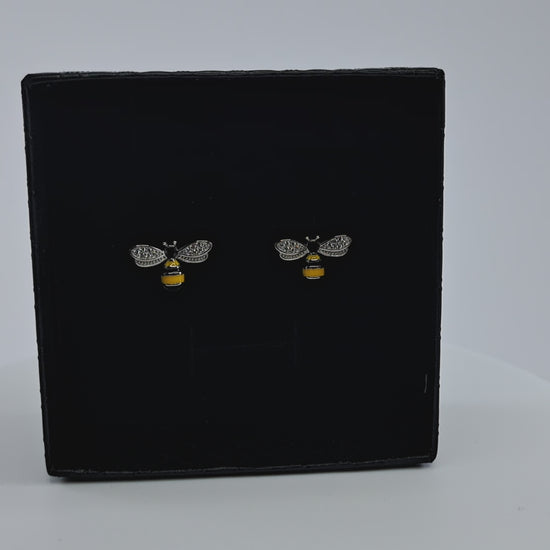 Elevate your style to new heights with these stunning Bee Stud Earrings! These earrings are carefully crafted with high-quality rhodium-plated sterling silver to ensure maximum durability and shine. The earrings feature an enchanting bee design, adorned with sparkling clear cubic zirconia stones and intricate black and yellow enamel accents, adding a touch of whimsy and charm to your look. The earrings measure 1.5cm x 1cm, making them the perfect size to be noticed without being overwhelming. These Bee Stud Earrings are an excellent addition to your jewelry collection and a great way to add a touch of elegance and sophistication to any outfit. Black and yellow enamel accents, adding a touch of whimsy and charm to your look.