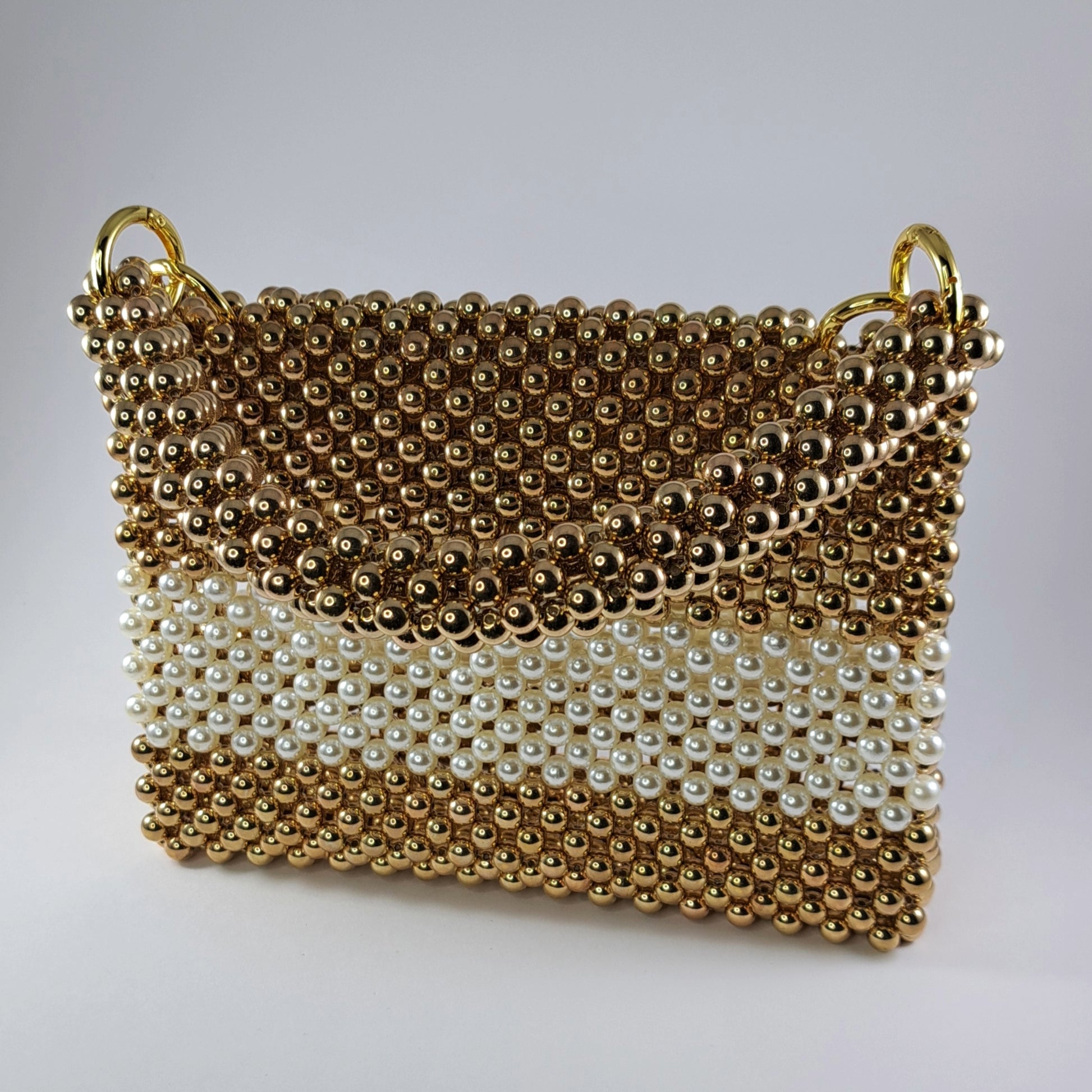 Introducing our exquisite luxury handbag, featuring a stunning design adorned with shimmering gold and rich olive pearls. Each piece is meticulously handcrafted in the UK by the skilled artisans at Peng Eli Fashion, ensuring that no two bags are exactly alike, and each serves as a unique statement accessory to elevate any outfit. This exclusive handbag boasts limited availability, so you can be assured of its rarity. Once ordered, your beautiful bag will be delivered within 5-7 days, allowing you to enjoy it in no time. The bag comes unlined, showcasing the artistry of its handmade construction. It is elegantly presented in a stylish gift box, making it an exceptional choice not only as a luxurious gift for someone special in your life but also as an indulgent treat for yourself. Whether for a birthday, anniversary, or just because, this handbag is sure to impress and leave a lasting impression.