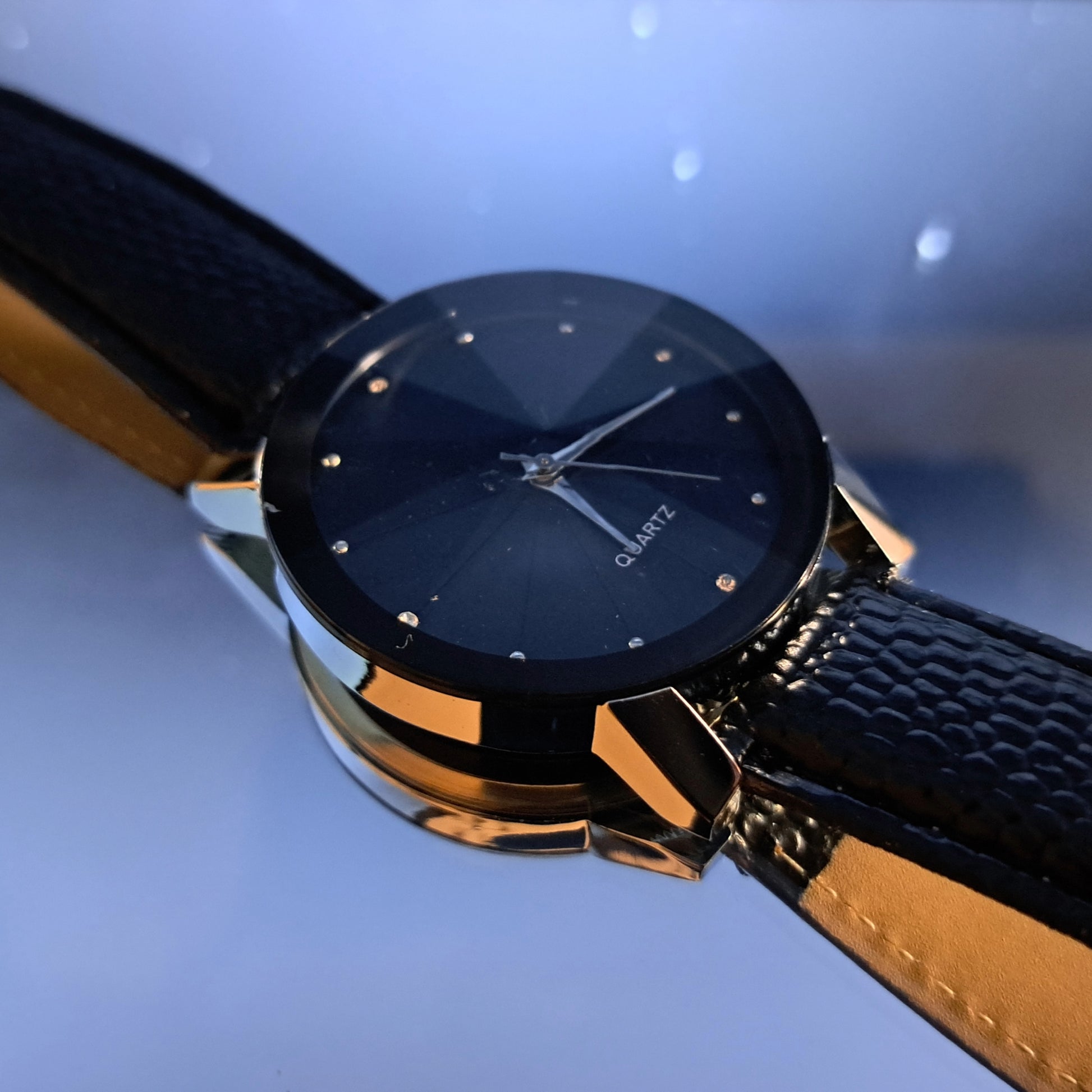Enhance your fashion with our Men's diamond face quartz watch. This elegant analog watch boasts a diamond-cut face and leather strap, bringing a sense of luxury to any ensemble. Stay punctual and fashionable with this essential addition to any modern man's wardrobe. Add a refined touch to your attire with this sophisticated analog watch. The diamond-cut face exudes extravagance and elevates any outfit, making it an indispensable accessory for style-conscious men. Take advantage of this essential timepiece!