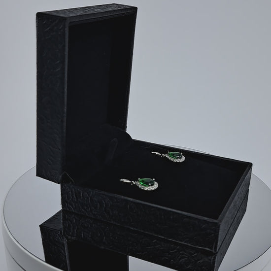 Elevate your style and add a touch of elegance to your wardrobe with our stunning Sterling Silver Emerald CZ Teardrop Earrings. These earrings are designed to be the perfect accessory for any special occasion, whether a wedding, prom, or a night out.